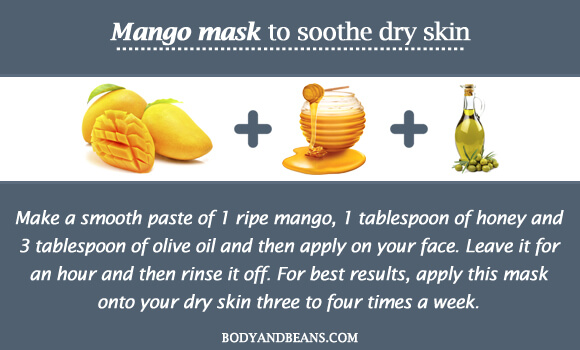 Mango mask contains 1 ripe mango, 1 tablespoon of honey and 3 tablespoon of olive oil. Make a smooth paste of these ingredients and then apply on your face. Leave it for an hour and then rinse it off. Mango is a rich source of vitamin A that hydrates and moisturizes dry skin. It also heals dry, flaky skin and rejuvenates dull skin. Honey is known for its nourishing properties, and olive oil has great moisturizing benefits on dry skin, thus making this mask ideal for those with dry, flaky skin. For best results, apply this mask onto your dry skin three to four times a week.