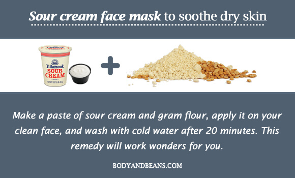 Dryness can cause your skin to turn flaky. The lactic acid in sour cream gently exfoliates the dead skin cells and moisturizes your skin, making it smooth and supple. You can make a paste of sour cream and gram flour, apply it on your clean face, and wash with cold water after 20 minutes. This remedy will work wonders for you.